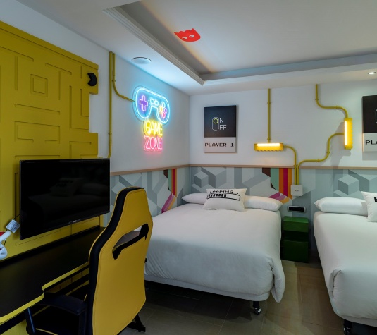 Sumérgete en un universo de entretenimiento en nuestro hotel Magic Games especialmente dedicado para los más gamers. Una experiencia única en familiacon la emoción de los juegos digitales y de mesa. Desde los juegos más clásicos del mundo retro hasta la última generación virtual, para que puedas compartir la magia de los videojuegos.